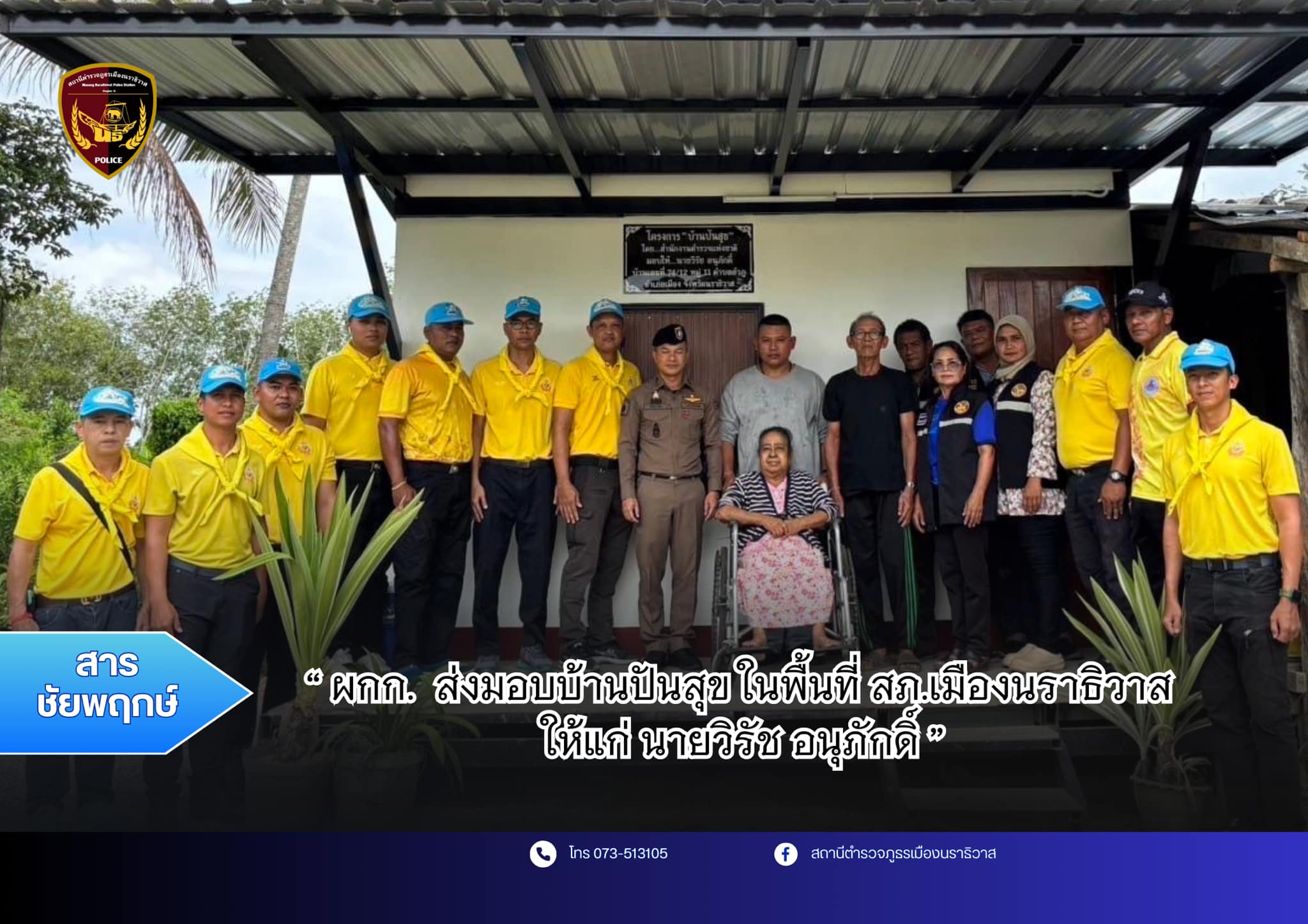 ส่งมอบบ้าน ตามโครงการบ้านปันสุข เมื่อวันที่ 14 พฤศจิกายน 2567 เวลา 10.00 น. พ.ต.อ.ปรัชญา ไบเตะ ผกก.ส