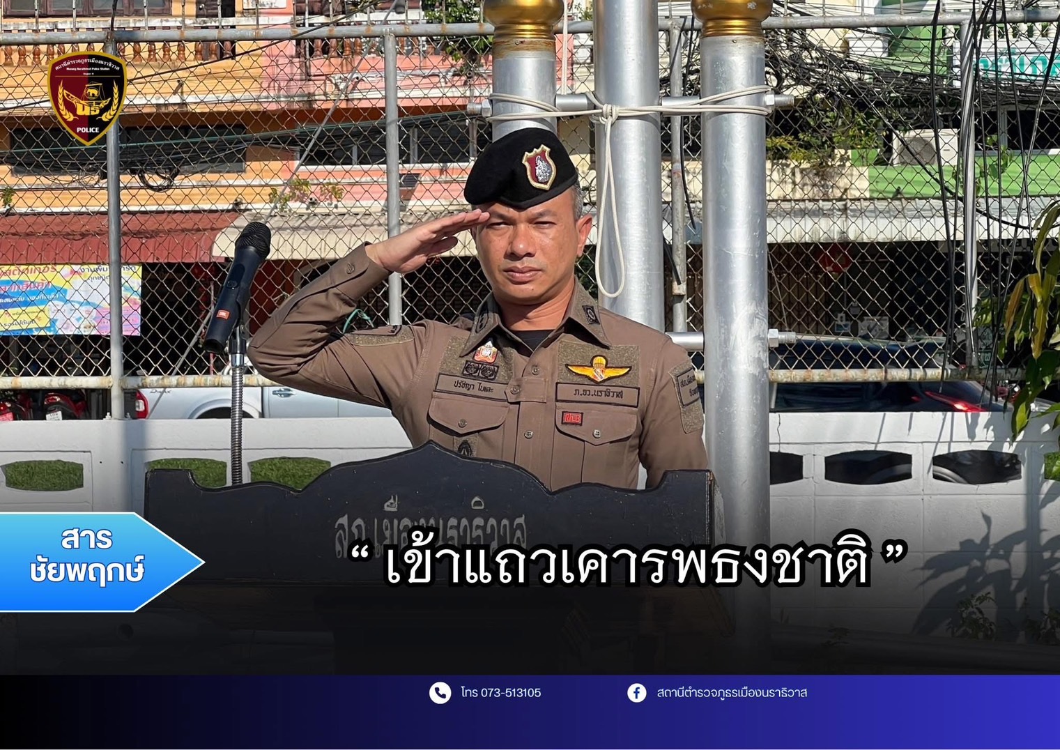 เข้าแถวเคารพธงชาติ เมื่อวันที่ 26 ธันวาคม 2567 เวลา 08.30 น. พ.ต.อ.ปรัชญา ไบเตะ ผกก.สภ.เมืองนราธิวาส