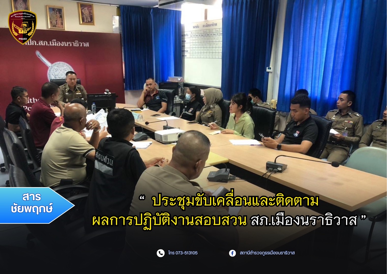 เมื่อวันที่ 13 มีนาคม 2568เวลา 14.00 น.พ.ต.อ.ปรัชญา ไบเตะ ผกก.สภ.เมืองนราธิวาสได้ดำเนินการประชุมการข