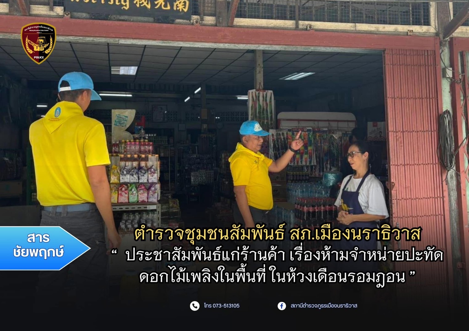 ประชาสัมพันธ์ ห้ามจำหน่ายปะทัด/ดอกไม้เพลิงในพื้นที่ ในห้วงเดือนรอมฎอน เมื่อวันที่ 10 มีนาคม 2568 เวล