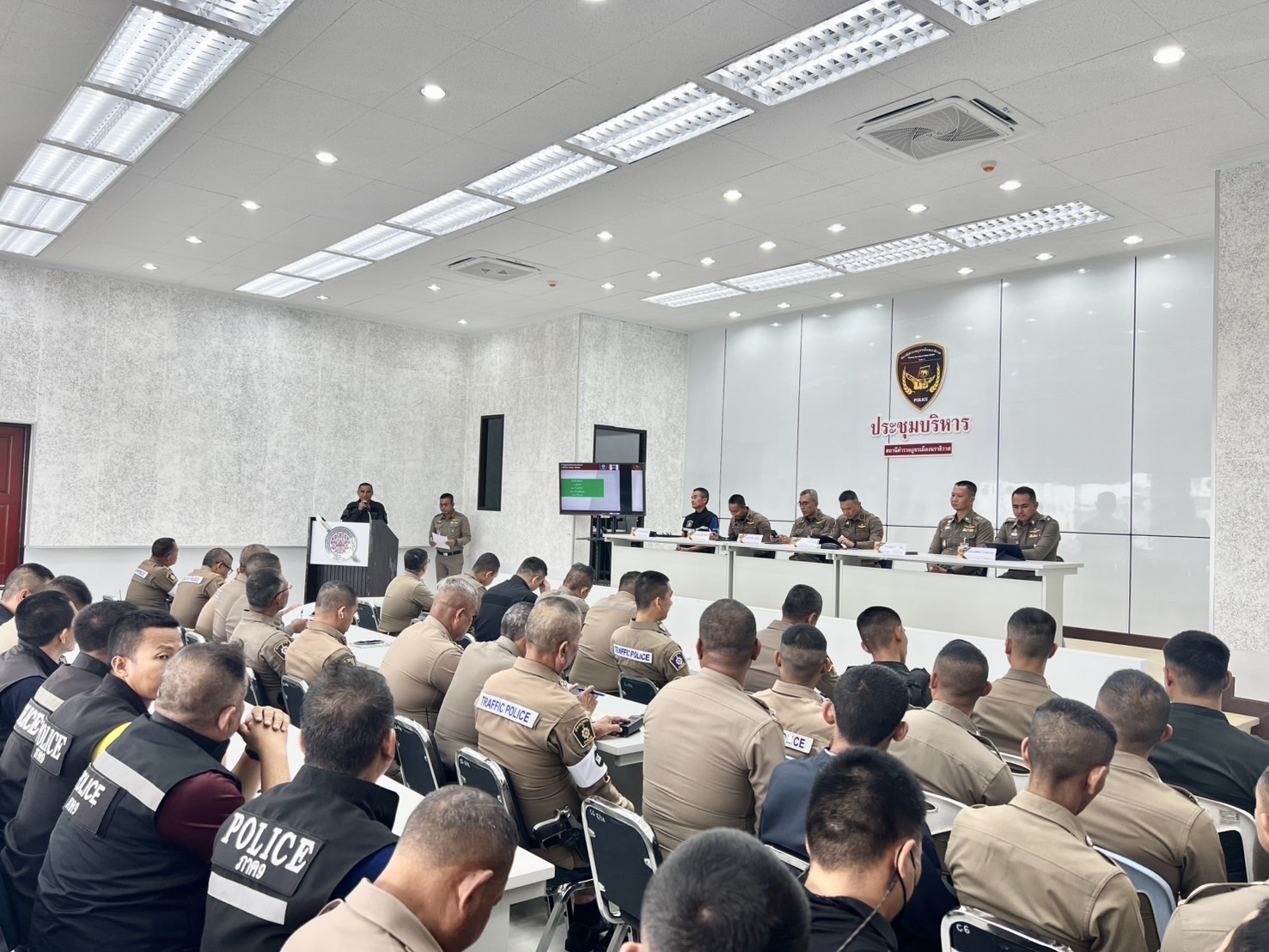 ประชุมบริหารประจำเดือน สภ.เมืองนราธิวาส ครั้งที่ 3/2568 เมื่อวันที่ 10 เมษายน 2568 เวลา 10.00 น. พ.ต