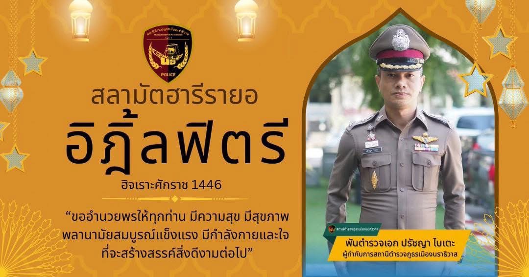เนื่องในวันฮารีรายออีฎิ้ลฟิตรี ฮิจเราะห์ศักราช 1446 ” ขออำนวยพรให้ทุกท่านมีความสุข สุขภาพพลานา