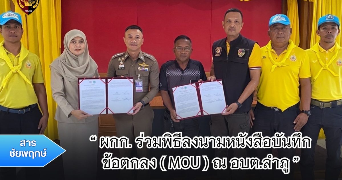 ร่วมพิธีลงนามหนังสือบันทึกข้อตกลง (MOU) ว่าด้วยความร่วมมือการรักษาความสงบเรียบร้อยและรักษาความปลอดภัยของประชาชนในท้องถิ่นและชุมชน ระหว่าง สภ.เมืองนราธิวาส และ อบต.ลำภู