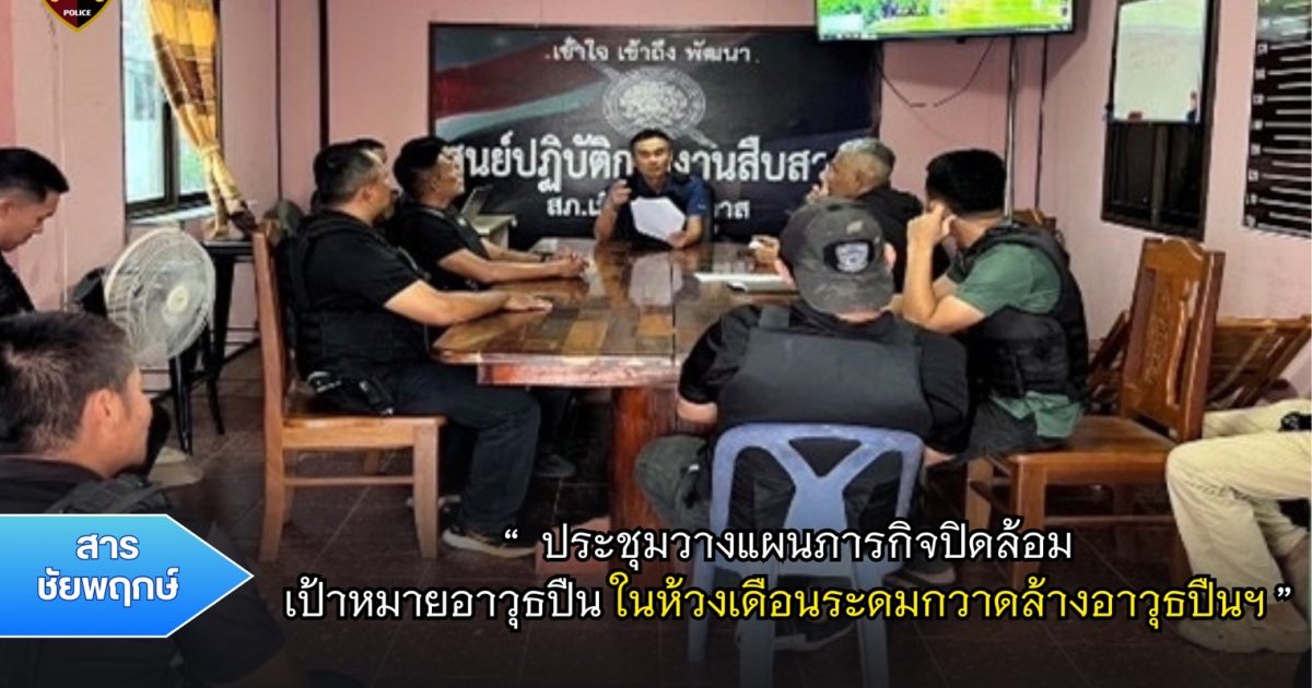 ผลการปฏิบัติงานของสายงานสืบสวนประจำเดือนพฤศจิกายน 29 พฤศจิกายน 2567 โดย admin / ผลการปฏิบัติงานของแต่ละสายงาน,ผลการปฏิบัติงานของสายงานสืบสวน,ผลการปฏิบัติงานของแต่ละสายงาน ประชุมวางแผนภารกิจปิดล้อมเป้าหมายอาวุธปืน ในห้วงเดือนระดมกวาดล้างอาวุธปืนฯ เมื่อวันที่ 10 พฤศจิกายน 2567 เวลา 09.00 น. พ.ต.ท.ไพรัตน์ เกียรติเจริญศิริ รอง ผกก.สส.สภ.เมืองนราธิวาสพร้อมชุดสืบสวน สภ.เมืองนราธิวาส ร่วมประชุมวางแผน ว.4 ภารกิจปิดล้อมเป้าหมายอาวุธปืน ในห้วงระดมกวาดล้างอาวุธปืนฯ ณ ศปก.สืบสวน สภ.เมืองนราธิวาส