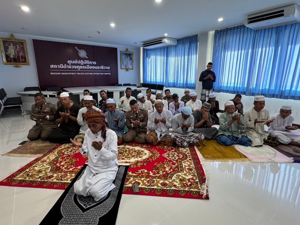 ผลการปฏิบัติงานของสายงานอำนวยการประจำเดือนตุลาคม 29 พฤศจิกายน 2567 โดย admin / ผลการปฏิบัติงานของแต่ละสายงาน,ผลการปฏิบัติงานของสายงานอำนวยการ,ผลการปฏิบัติงานของแต่ละสายงาน วันตำรวจแห่งชาติ 2567 เมื่อวันที่ 17 ตุลาคม 2567 เวลา 08.00 น. พ.ต.อ.ปรัชญา ไบเตะ ผกก.สภ.เมืองนราธิวาส พ.ต.ท.ธณวิน นิลวานิช รอง ผกก.(สอบสวน) สภ.เมืองนราธิวาส พ.ต.ท.ไพรัตน์ เกียรติเจริญศิริ รอง ผกก.สส.สภ.เมืองนราธิวาส พร้อม กต.ตร.สภ.เมืองนราธิวาส ,สว.อก.สภ.เมืองนราธิวาส , สวป.สภ.เมืองนราธิวาส ,สวป.(ชมส.)ฯ ,รอง สวป.ฯ และข้าราชการตำรวจในสังกัด ร่วมพิธีเนื่องในวันตำรวจ ประจำปี 2567 ประกอบด้วย พิธีบวงสรวงสักการะศาลพระภูมิประจำหน่วย , พิธีกล่าวคำสัตย์ปฏิญาณ-อุดมคติตำรวจ , อ่านสาร ผบ.ตร. และให้โอวาทแก่ข้าราชการตำรวจ , พิธีมอบประกาศนียบัตร แก่ข้าราชการตำรวจดีเด่น พิธีเจริญพระพุทธมนต์ และพิธีละหมาดฮายัด ขอดูอาร์ เพื่อเสริมสิริมงคลแก่หน่วยงาน และอุทิศส่วนบุญส่วนกุศลแก่ข้าราชการตำรวจที่เสียชีวิตจากการปฏิบัติหน้าที่ ณ บริเวณที่ทำการ สภ.เมืองนราธิวาส และ ภ.จว.นราธิวาส อ.เมือง จว.นราธิวาส
