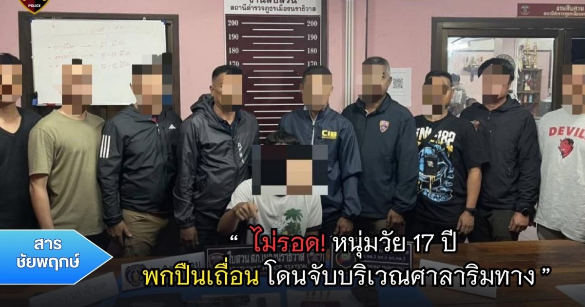 ผลการปฏิบัติงานของสายงานสืบสวนประจำเดือนมีนาคม 12 ธันวาคม 2567 โดย admin / ผลการปฏิบัติงานของแต่ละสายงาน,ผลการปฏิบัติงานของสายงานสืบสวน จับกุมอาวุธปืน เมื่อวันที่ 25 มีนาคม เวลา 23.00 น.พ.ต.ท.ไพรัตน์ เกียรติเจริญศิริ รอง ผกก.สส.สภ.เมืองนราธิวาส พร้อมชุดตำรวจสืบสวน สภ.เมืองนราธิวาส ✅ ได้ร่วมกันทำการจับกุมตัว นาย A อายุ 17 ปี ที่อยู่ xxx ตำบลบางปอ อำเภอเมือง จังหวัดนราธิวาส ✅ โดยแจ้งข้อกล่าวหา ว่า กระทำความผิดฐาน กล่าวหา ว่า “มีอาวุธปืนและเครื่องกระสุนปืนไว้ในครอบครองโดยไม่ได้รับอนุญาต และพกพาอาวุธปืนติดตัวไปในเมือง หมู่บ้าน หรือทางสาธารณะ โดยไม่มีเหตุอันควร สถานที่จับกุม บริเวณศาลาริมทาง ถ.ระแงะมรรคา ต.มะนังตายอ อ.เมือง จ.นราธิวาส