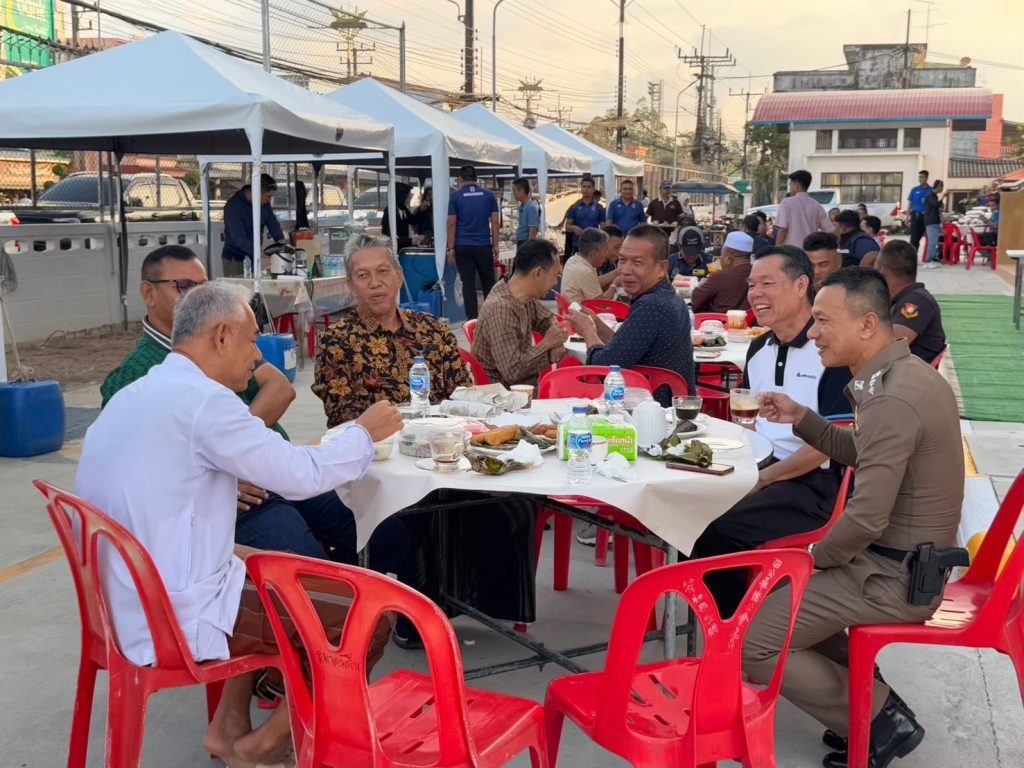 ผลการปฏิบัติงานของสายงานอำนวยการประจำเดือนกุมภาพันธ์ 12 ธันวาคม 2567 โดย admin / ผลการปฏิบัติงานของแต่ละสายงาน,ผลการปฏิบัติงานของสายงานอำนวยการ,ผลการปฏิบัติงานของแต่ละสายงาน กิจกรรมสานสัมพันธ์ยามเช้า เปิดประตูสู่เดือนรอมฎอน เมื่อวันที่ 15 กุมภาพันธ์ 2568 เวลา 07.00 น.พ.ต.อ.ปรัชญา ไบเตะ ผกก.สภ.เมืองนราธิวาสพร้อมข้าราชการตำรวจ สภ.เมืองนราธิวาส กิจกรรมประกอบด้วย กิจกรรมกาแฟยามเช้า ซึ่งได้รับเกียรติจากผู้นำส่วนงานราชการ ส่วนท้องถิ่น ,ผู้นำศาสนา และนักธุรกิจผู้ประกอบการร้านค้าในพื้นที่ เพื่อพบปะพูดคุย แลกเปลี่ยนทัศนคติ และรับประทานอาหาร ก่อนเข้าสู่ช่วงเดือนรอมฎอน เดือนอันประเสริฐ ในห้วงเดือนมีนาคม 2568 นี้ ณ บริเวณลานหน้าที่ทำการ สภ.เมืองนราธิวาส