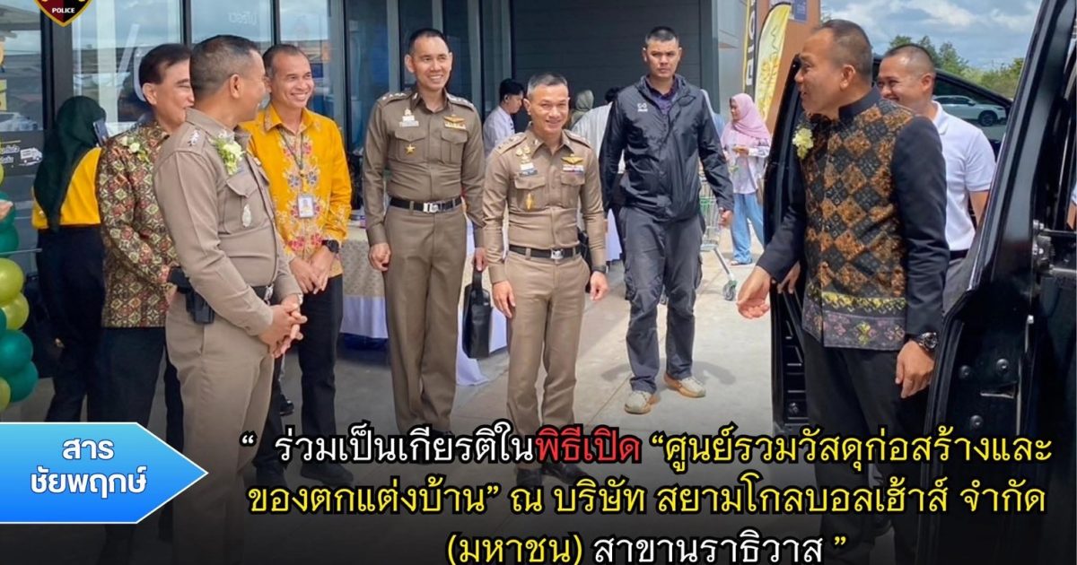 พ.ต.อ.ปรัชญา ไบเตะ ผกก.สภ.เมืองนราธิวาส ร่วมเป็นเกียรติในพิธี ” บริษัท สยามโกลบอลเฮ้าส์ จำกัด (มหาชน) สาขานราธิวาส “